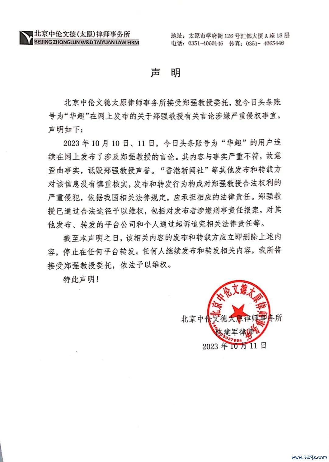 对于近期汇注上郑强同道有计划子虚新闻的严正声明